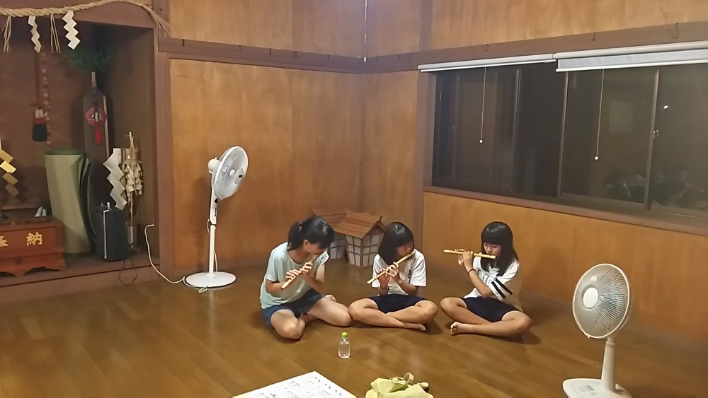 ちょっと遅くなってしまい、残念ながら小学生は帰ってしまってましたが中学生と青年会の方々が、素晴らしいお囃子を披露して下さいました